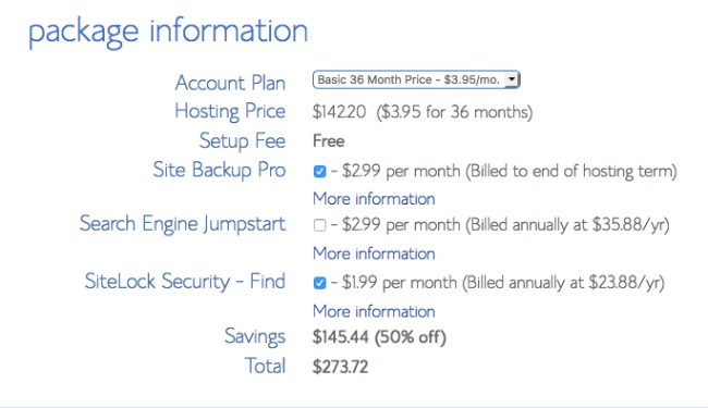 这里有其他附件可供选择。我不认为他们是真正必要除了域名Whois隐私。这基本上意味着你的个人信息而不是列在一个在线目录,Bluehost会上市公开你的网站所有者。当然,您仍将域名的所有者,但不会公开您的联系详情。
