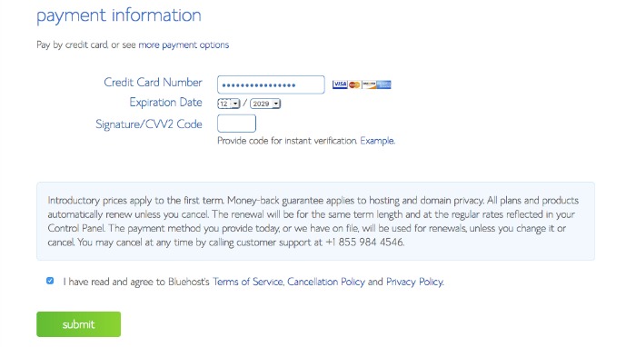 - 报名参加Bluehost主机使用这个链接或一个过程中
